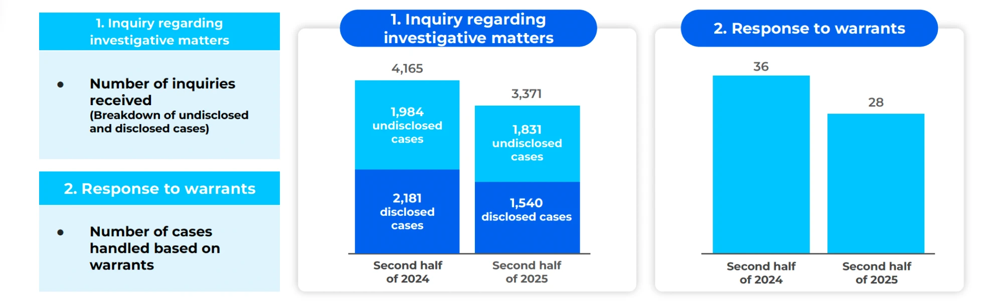 In order to ensure a safe and secure platform for our users, we cooperate earnestly in criminal investigations. We are committed to protecting our users’ privacy and will continue to regularly review and update our standards for handling disclosure requests from investigative authorities. We will also regularly publish transparency reports on how these requests are being handled to ensure that our users can continue to use our services with peace of mind.